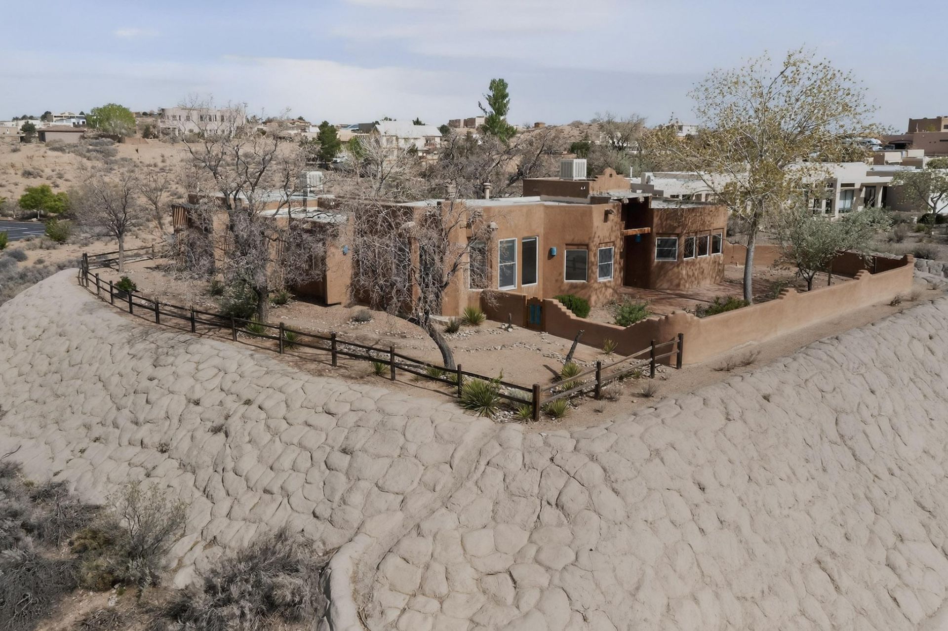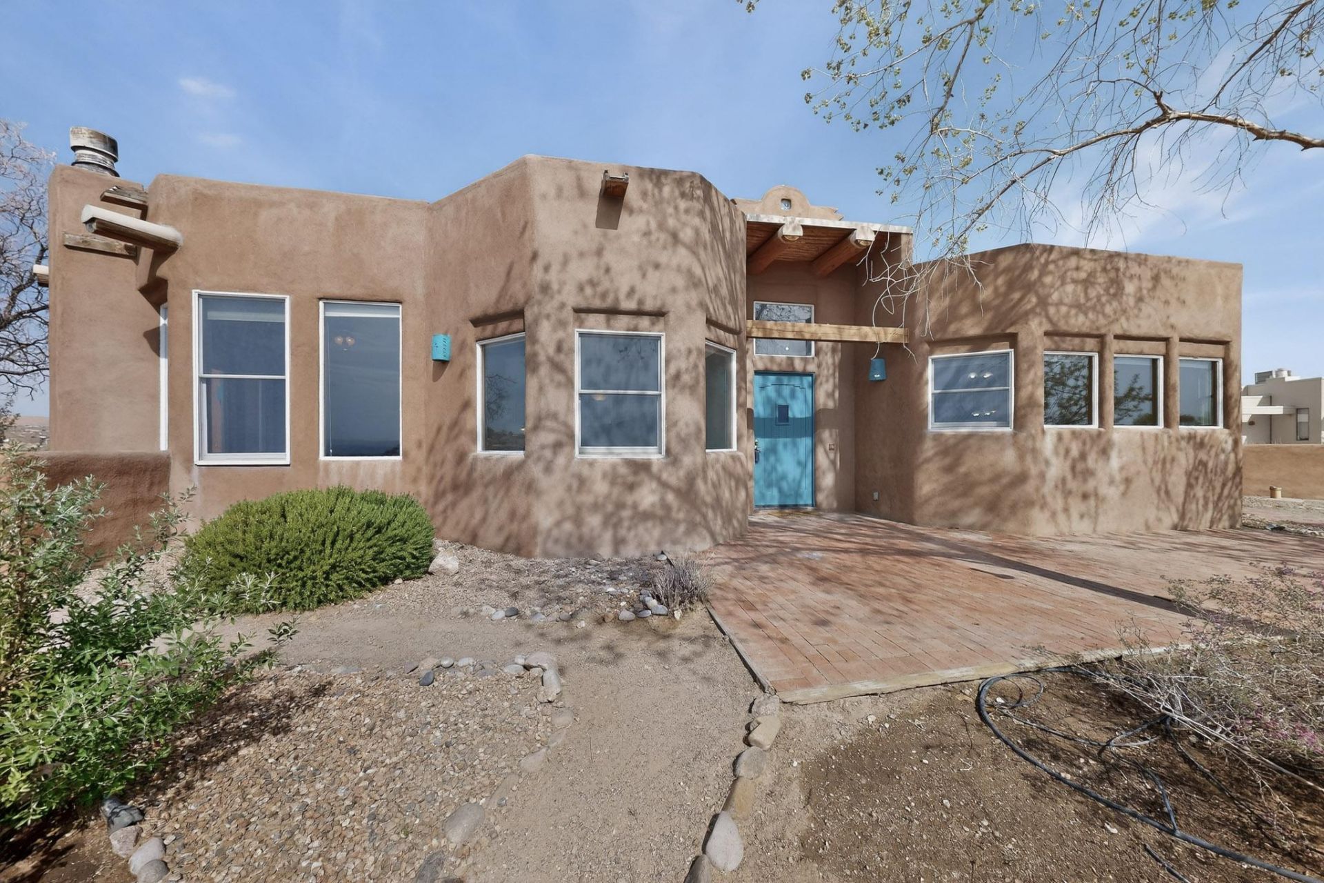 Perched on an elevated 1.38-acre mesa lot, this retreat commands sweeping Sandia Mountain and valley views from nearly every room. 2,556 sq ft of single-level living includes 3, possible 4 bedrooms, 3 baths, and an oversized primary suite. The kitchen opens to a breakfast nook and the 27x15 covered patio is perfect for New Mexico sunsets. Walled courtyard entry with signature turquoise gates adds timeless character. The 3-car garage will fit all your toys. There is room to breathe with this property. Sold ''as-is'' but is in good condition! Open house 4-26 from 12-3 pm.