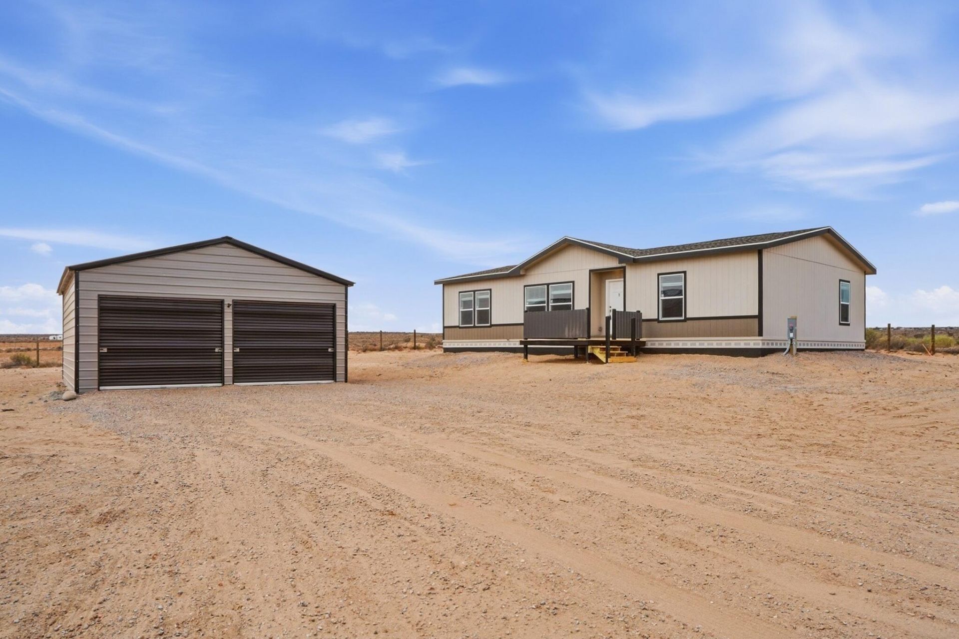 NEW NEW NEW! Come see this lovely home manufactured by Karsten on a permanent foundation! Home is powered by PNM, will have a shared well, and has a brand new septic tank! This place is spacious and bright, with 3 bedrooms and 2 baths. Relax in the open living concept! Large gathering spot at the kitchen island! Detached garage is oversized to assist with your storage needs. 1.1 acres provide plenty of room to settle in! And the views... Come see this tranquil homestead today before you miss out!