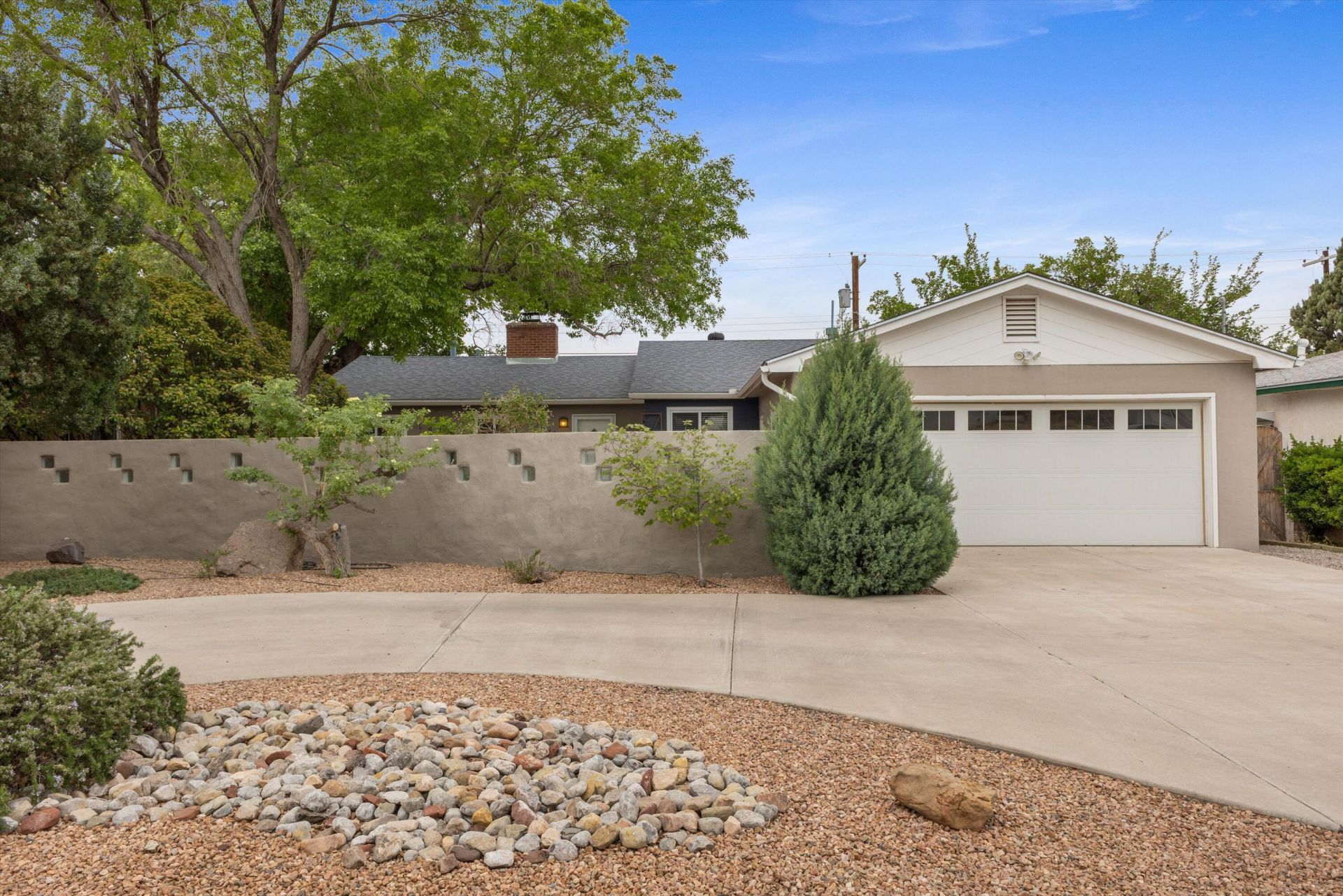 Welcome to this well kept home in a beautiful UNM north neighborhood. This charming property features newly refinished hardwood floors throughout, a wood burning brick fireplace, as well as built-ins in the living area. The kitchen includes tiled countertops, stainless steel appliances, and a built-in eating area. You'll love the wet-bar which could be used as a butler's pantry or mini work space. Primary suite is spacious and offers an updated bathroom with dual sinks, tiled wall & more! Looking for a casita or guest house (maybe Airbnb?) This one features a kitchenette with a built in-sink dishwasher & refrigerator, 3/4 bathroom, and it's own mini-split to heat & cool the space. Relax on the back patio with access via the living area & primary suite. Super clean and shows perfect!
