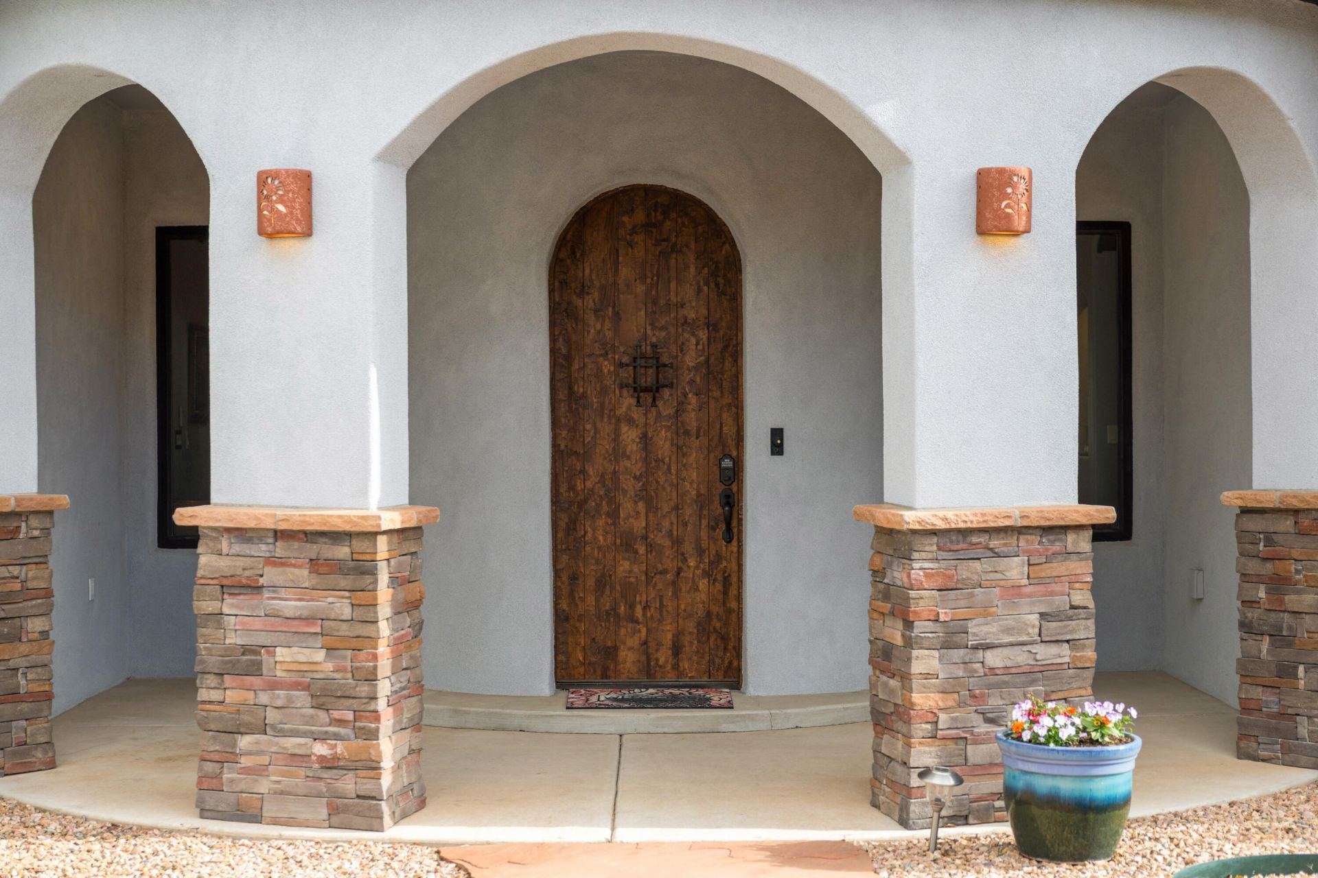 Welcome home to this multi-award winning luxury home located in the highly desirable Paa-ko Community. Stunning architectural elements at every turn from the covered rotunda front entrance, to a turret entry with natural light streaming in, to a wood barrel hallway ceiling. Entertaining is a delight! The outdoor living spaces boast breathtaking mountain views, an outdoor kitchen and the wildlife abounds! The contemporary kitchen is a Chef's dream with an eye popping island. In addition to the spacious living area that boasts a double-sided fireplace between the living and dining areas, you will find a den/office space, 3 bdrms and 2.5 baths. Paa-ko offers many amenities including hiking, pool, pickleball, bocce, tennis and the #1 Golf Course in NM! Come enjoy life in the East Mountains!