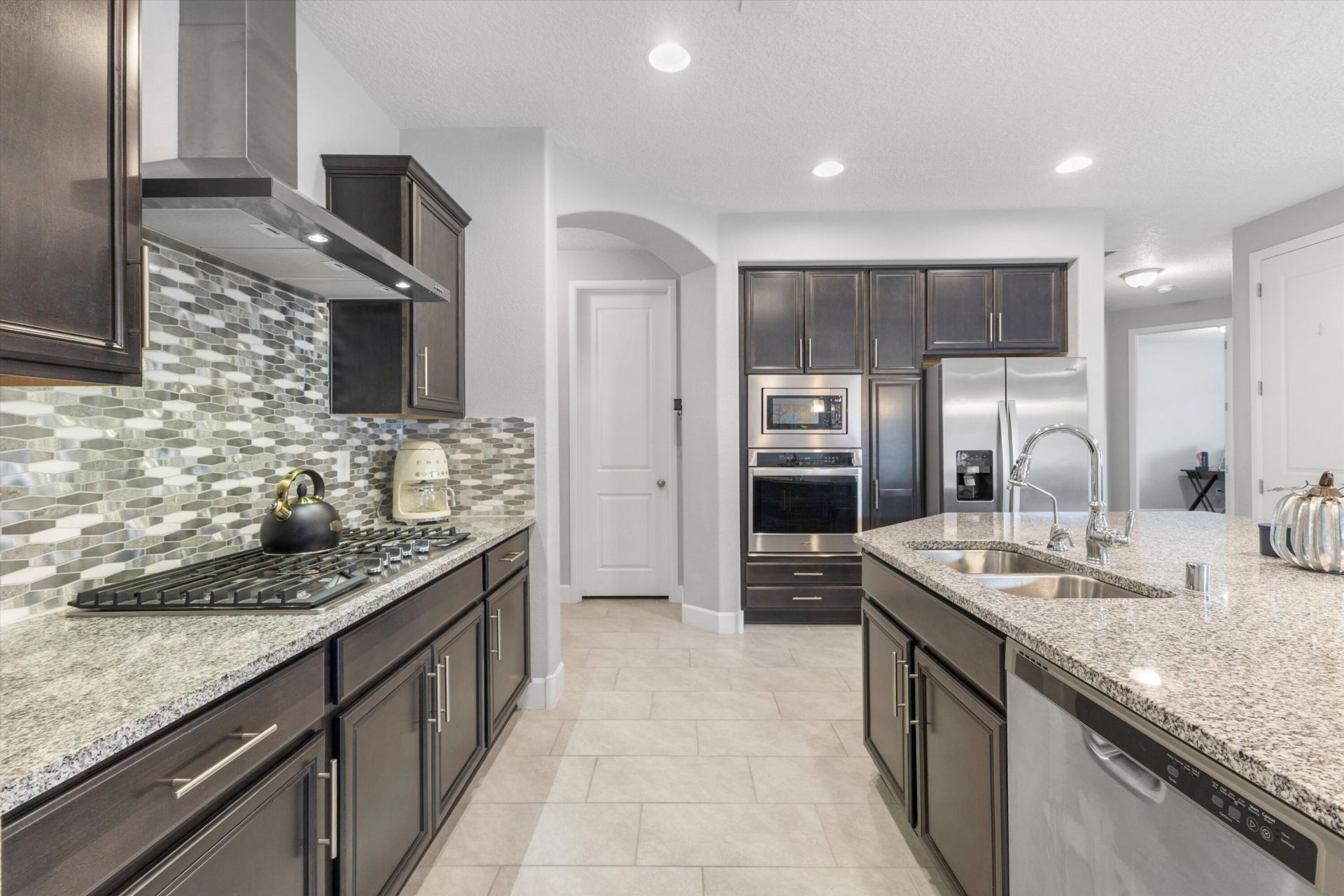 Nestled in the gated Peaks at Mariposa, this light-filled home blends comfort and thoughtful design. The open living space centers around a chef's kitchen with granite countertops, gas cooktop, and a large pantry, flowing into dining and flexible living areas. The spacious primary suite features a walk-in closet with direct laundry access, plus a spa-like bath with soaking tub and oversized shower. Enjoy a landscaped yard with covered patio, pergola, and gas stub for outdoor living. Tandem 3-car garage with epoxy floors. Community amenities include pool, gym, trails, and open green space.