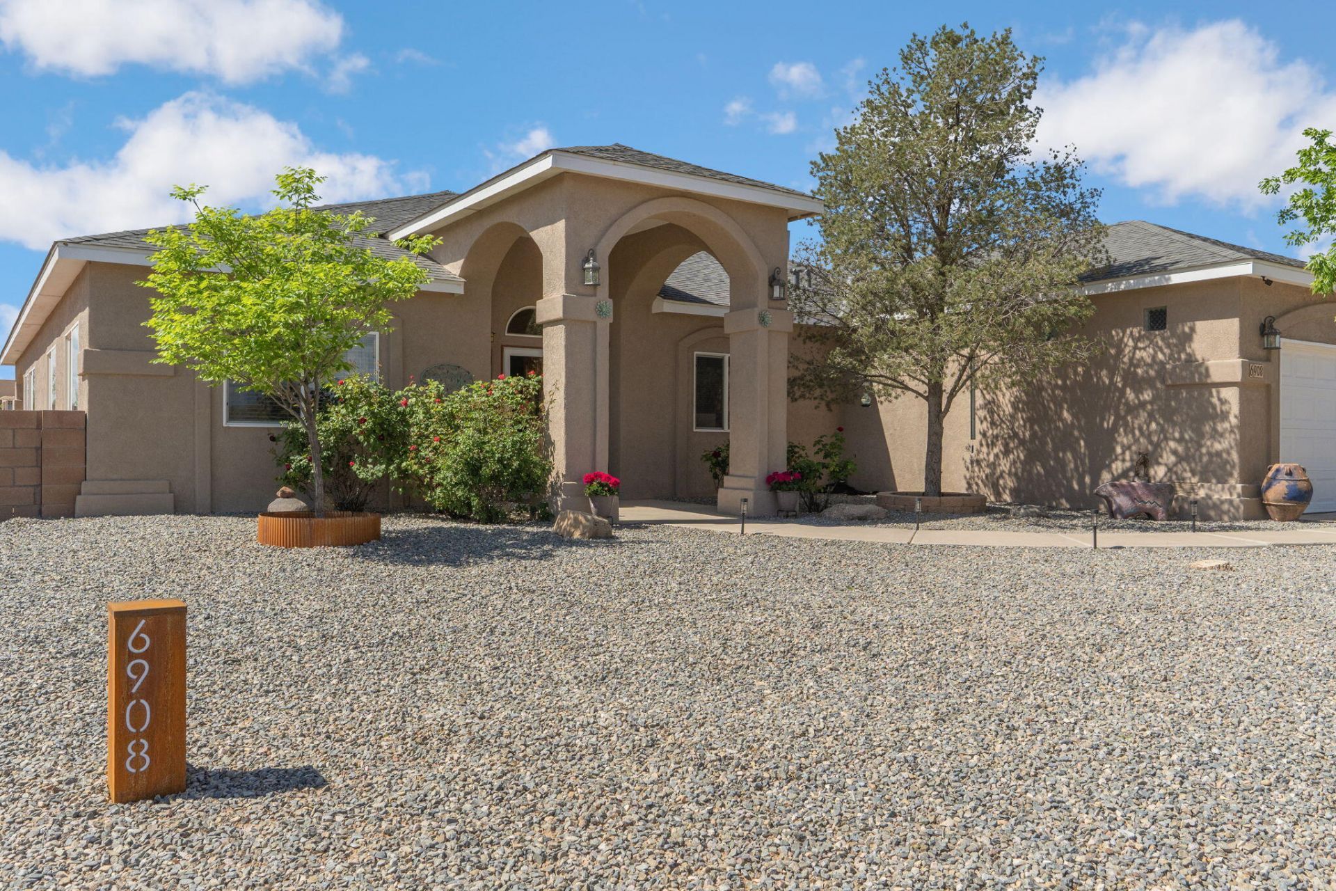 Enjoy breathtaking views of the Sandia Mountains from this stunning custom home, ideally situated on a 0.5-acre lot with open land on both sides--offering exceptional privacy and unobstructed scenery.This 4-bedroom, 2.5-bath home features two spacious living areas and an open-concept layout with a large family room and bright breakfast nook. The gourmet kitchen includes granite countertops, stainless steel appliances (approximately 2 years old), and a generous pantry. The expansive primary suite offers a relaxing retreat with a luxurious jetted tub, separate shower, and walk-in closet. Architectural details such as elegant archways and nichos add character throughout, while Talavera tile, laminate, and wood flooring, raised ceilings, and solid wood doors enhance the home's style and