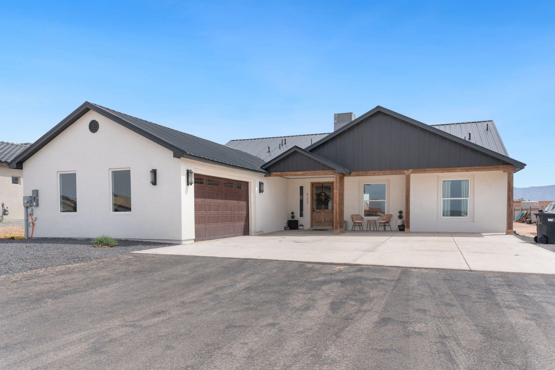 Beautiful newly built in May 2025 home in Rio Rancho featuring 3 bedrooms (possibly 4) and 2.5 baths. This thoughtfully designed property offers a spacious 3-car garage, durable metal roof, and energy-efficient tankless water heater. Inside, you'll find stunning Saltillo tile floors, large windows that flood the home with natural light, and a luxurious primary suite complete with a jetted soaking tub. Enjoy breathtaking views of the Sandia Mountains from both the front and back porches, all situated on a quiet street for added privacy and tranquility.