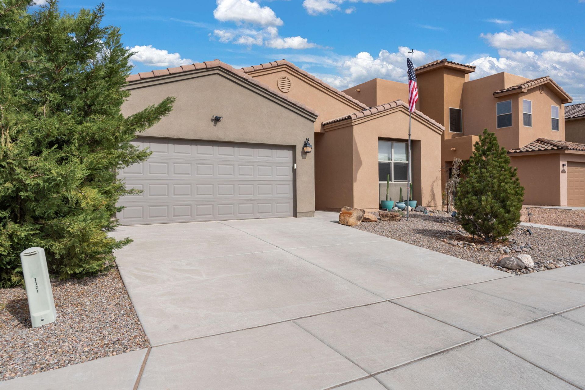 Welcome to this well maintained 3 bedroom, 2 bath home in the desirable Lomas Encantadas neighborhood of Rio Rancho. This home offers a comfortable, modern layout with quality finishes and everyday functionality in a highly rated school district. Inside, you'll find an open living, dining, and kitchen space designed for easy entertaining and daily living. The kitchen features granite countertops, generous cabinetry, and seamless flow into the main living area, while custom wood blinds and refrigerated air add comfort and style throughout. Step outside to a fully landscaped backyard with no rear neighbors, creating a private setting perfect for relaxing evenings or weekend gatherings. Conveniently located near shopping, restaurants, and I-25 for a quick commute to Albuquerque and Santa Fe.
